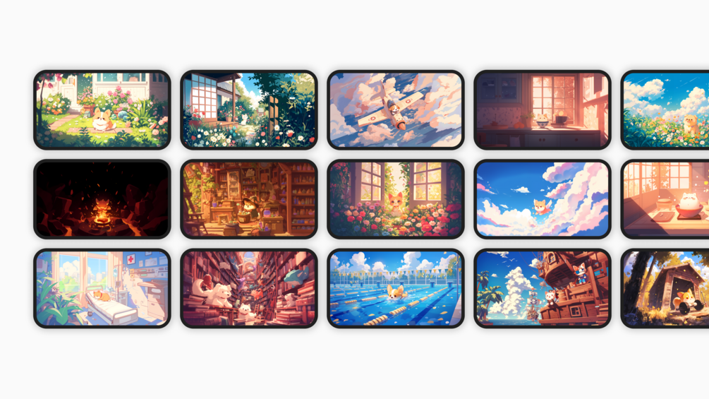 Cozy Pets is a cute, lofi-style collection of funny and adorable wallpapers of cats, dogs, and dragons for your desktop and mobile devices. This premium collection includes 21 sets of 42 wallpapers in 5K HD resolution, all with beautiful landscapes and funny scenarios of pets in all situations.
