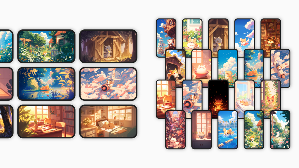 Cozy Pets is a cute, lofi-style collection of funny and adorable wallpapers of cats, dogs, and dragons for your desktop and mobile devices. This premium collection includes 21 sets of 42 wallpapers in 5K HD resolution, all with beautiful landscapes and funny scenarios of pets in all situations.
