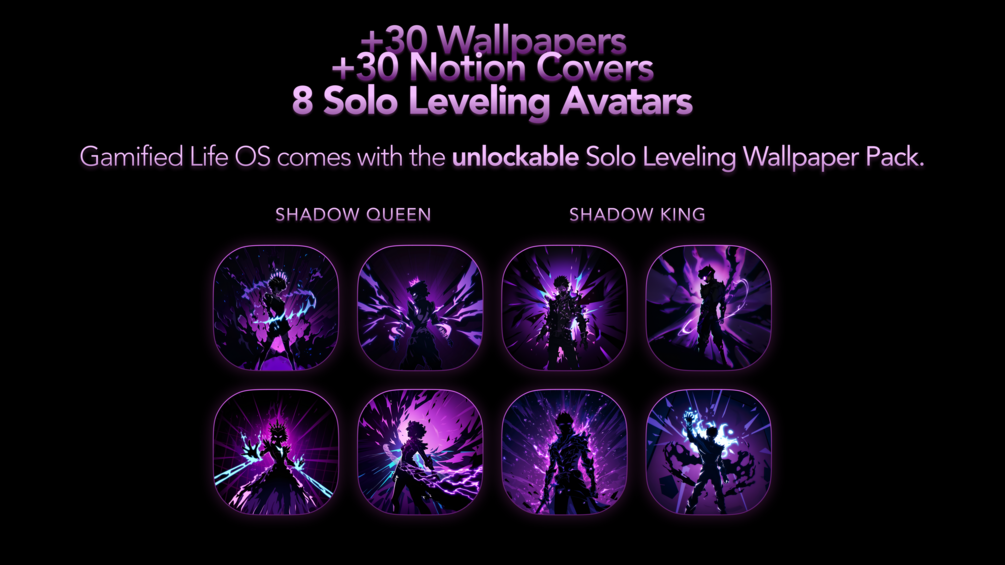 Gamified Life OS 3.0 was released on January 2, 2025, with a massive focus on the new Solo Leveling theme + dedicated wallpaper pack with custom avatars (Shadow Queen and Shadow King).