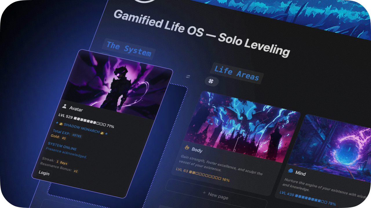 Gamified Life OS is a Solo Leveling–inspired life system built entirely in Notion.