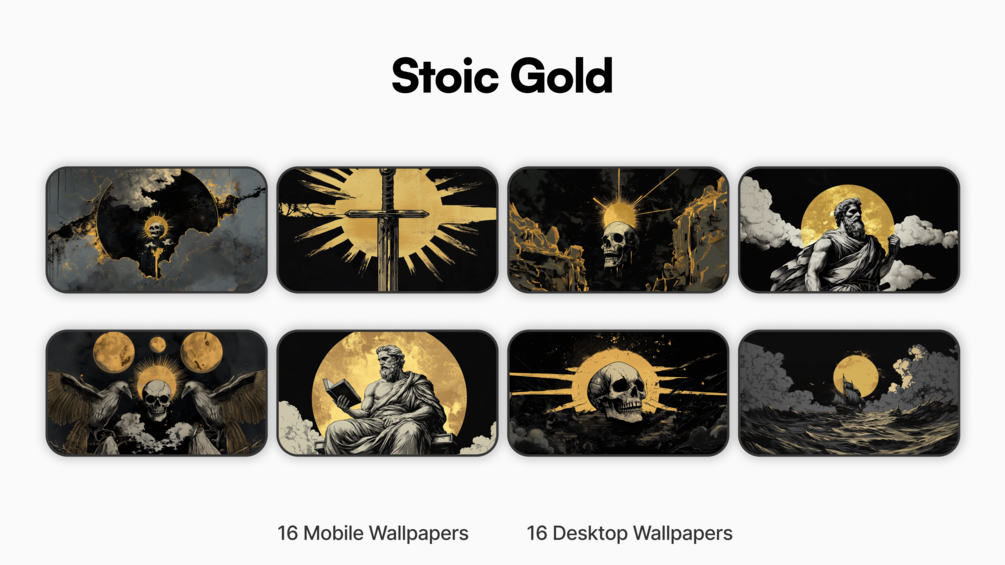 The Stoic Gold wallpaper pack is perfect for the Stoic practitioner who want a little more flair in their digital workspace.