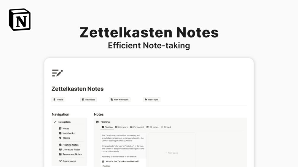 Zettelkasten Notes is an easy-to-use Notion template that uses the Zettelkasten method to help you organize your notes and build a knowledge base. This system saves you time, energy, and trouble by giving you a deadly simple and streamlined interface to jot down your notes and connect them with others.